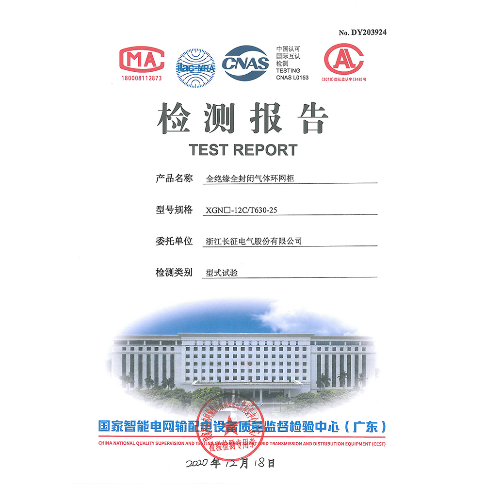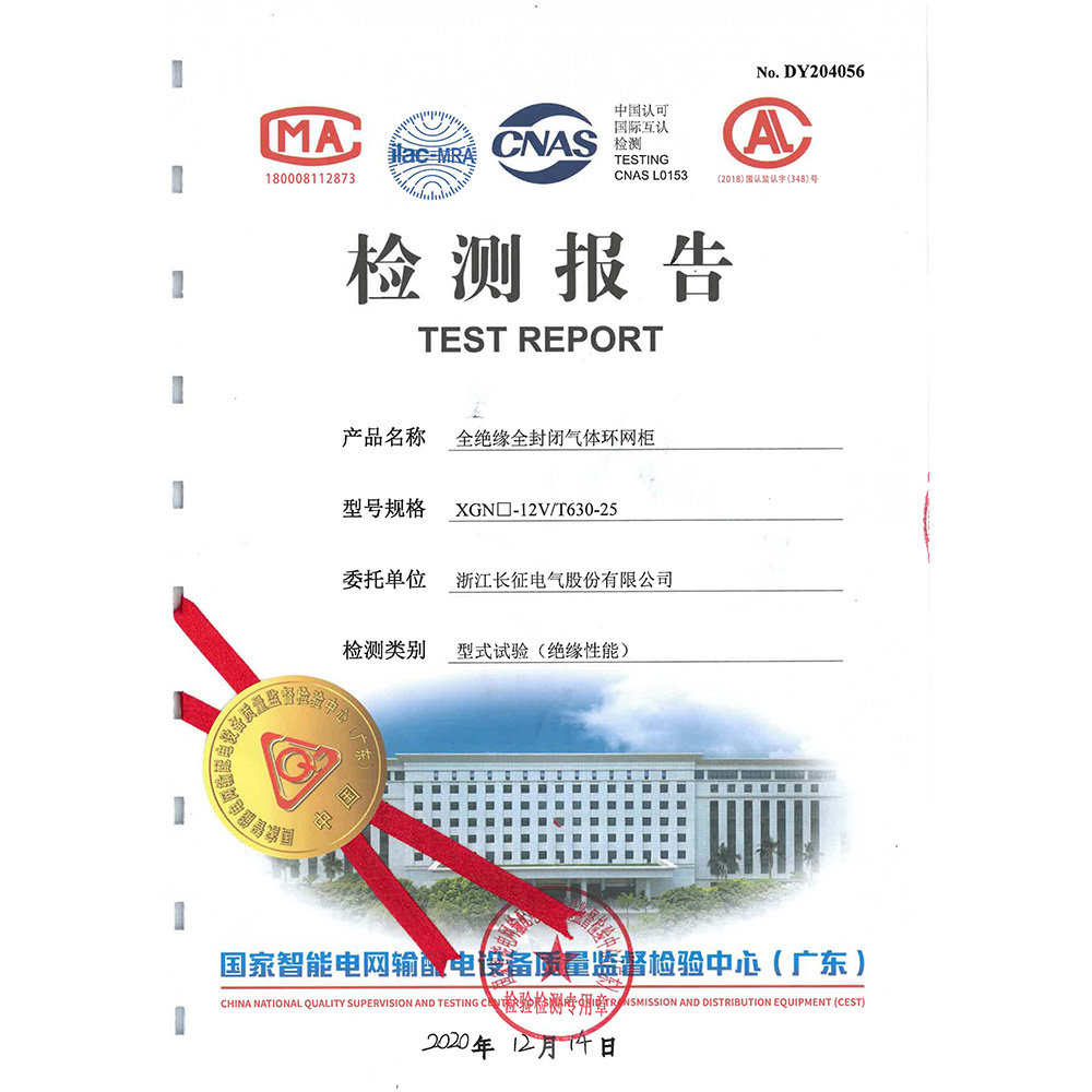 XGN□-12V/T630-25全絕緣全封閉氣體環網柜 檢測報告