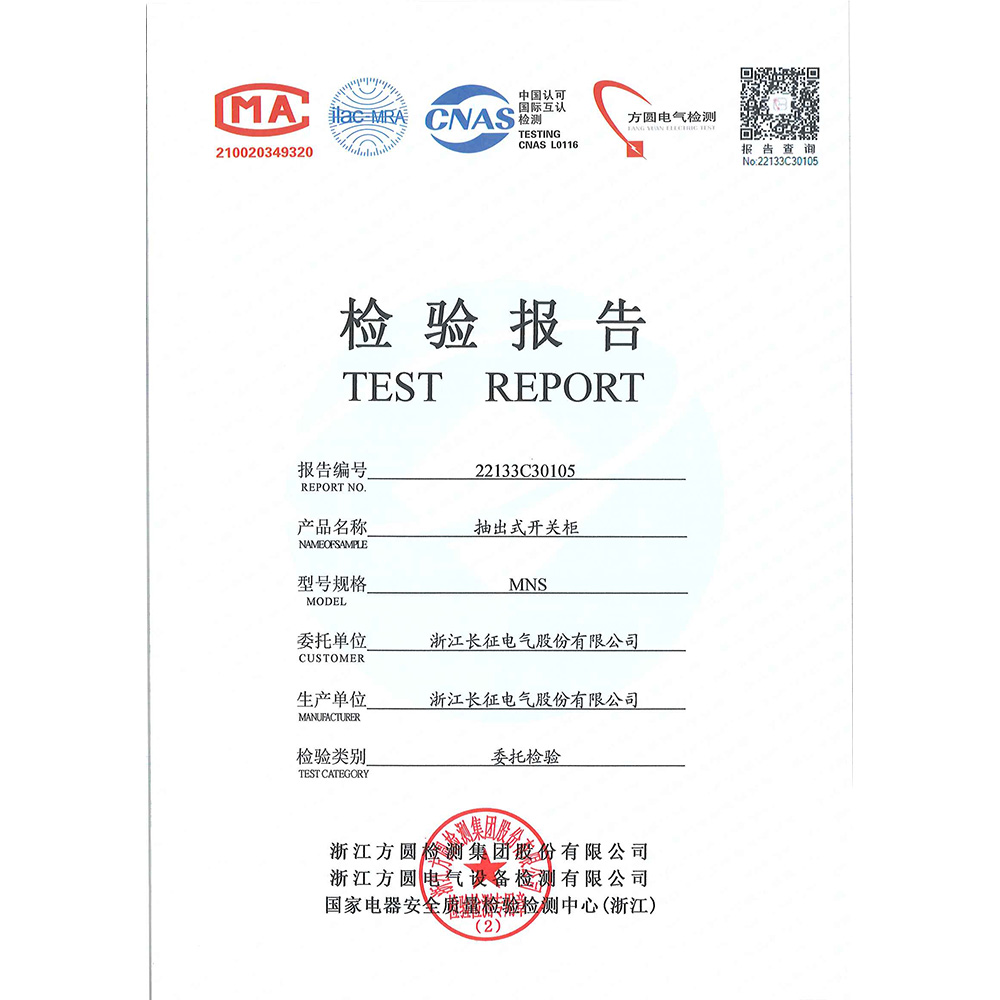 MNS抽出式開關柜 檢驗報告