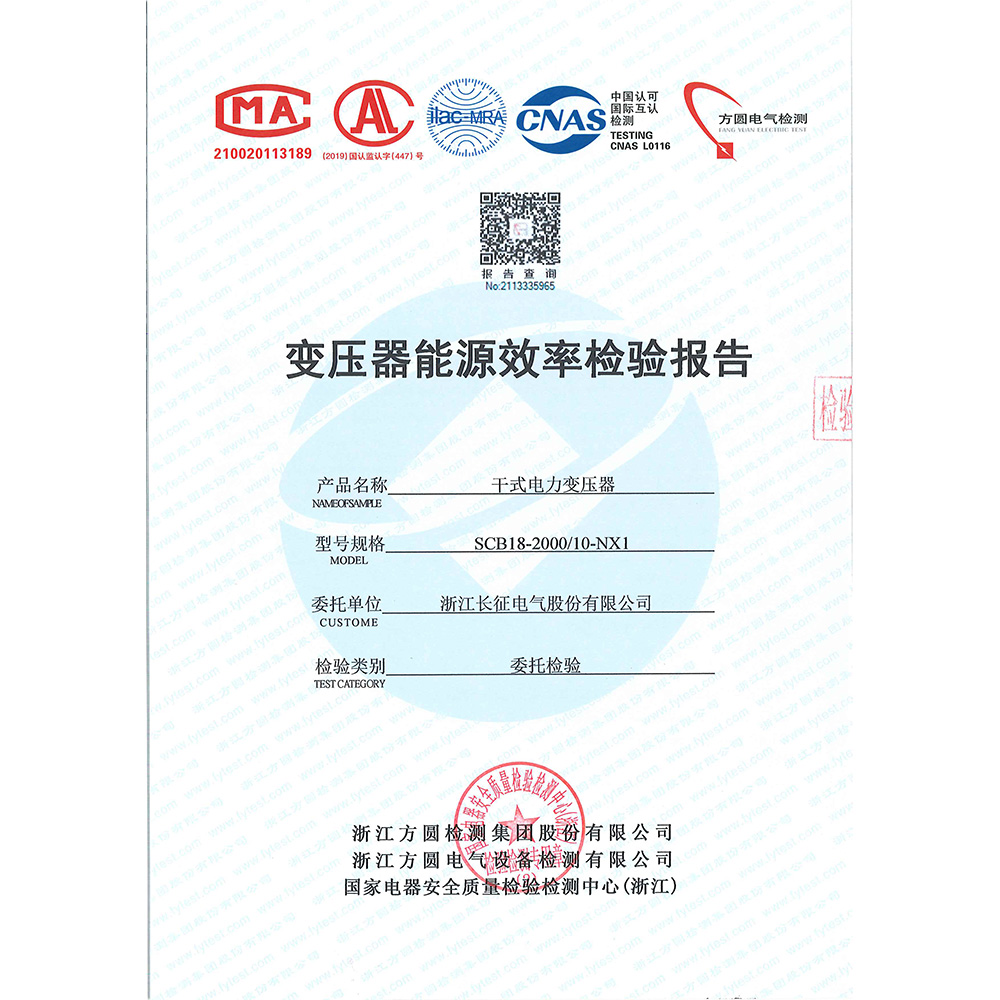 SCB18-2000/10-NX1干式電力變壓器 檢驗報告