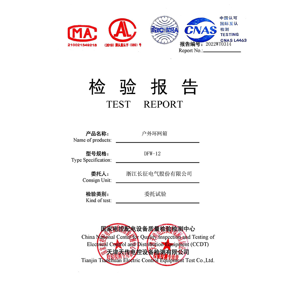 DWF-12預裝式非金屬封閉環網箱 檢驗報告
