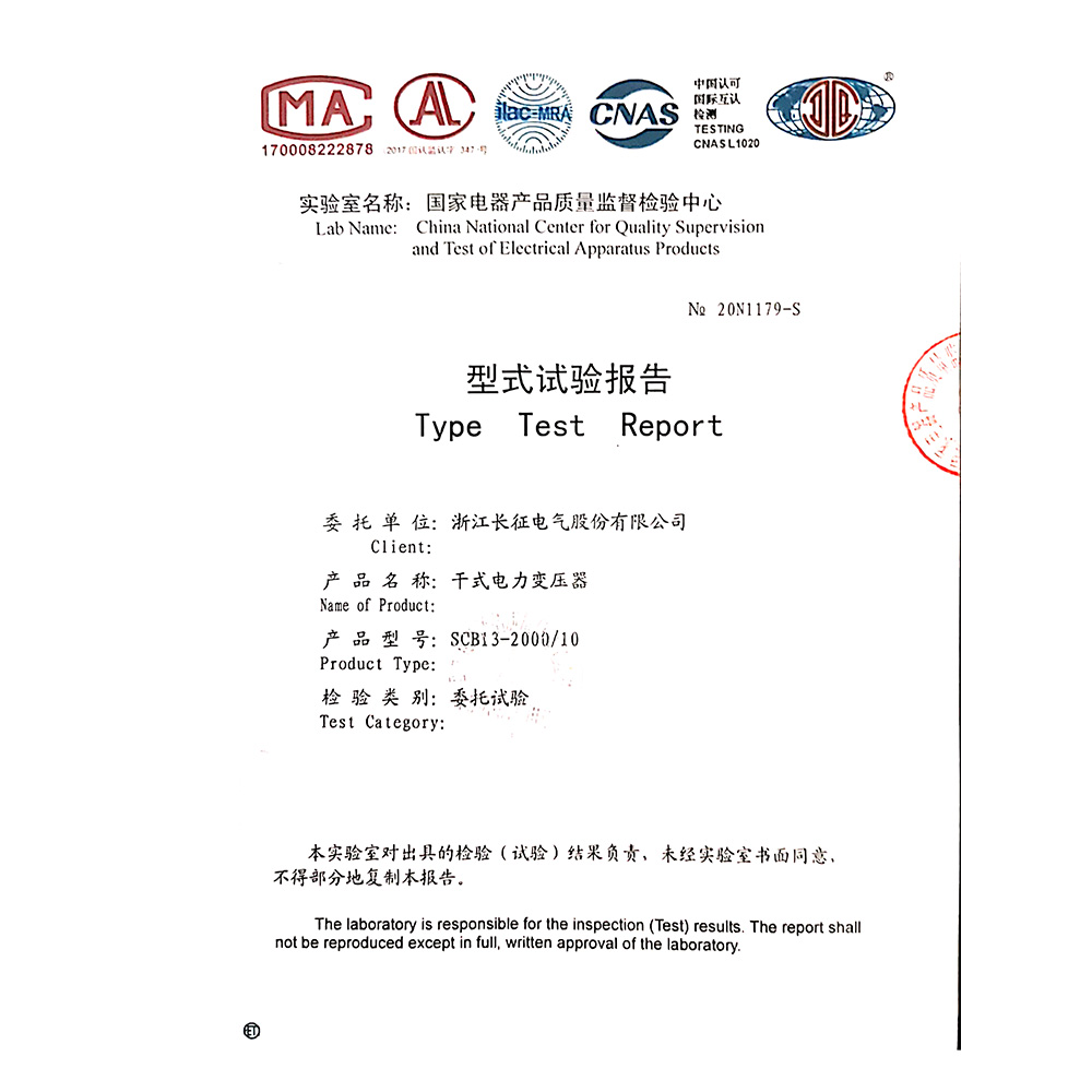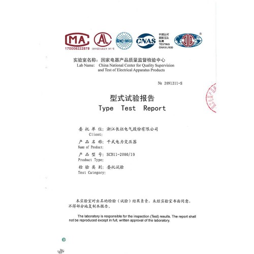 SCB11-2000-10干式電力變壓器 型式試驗報告