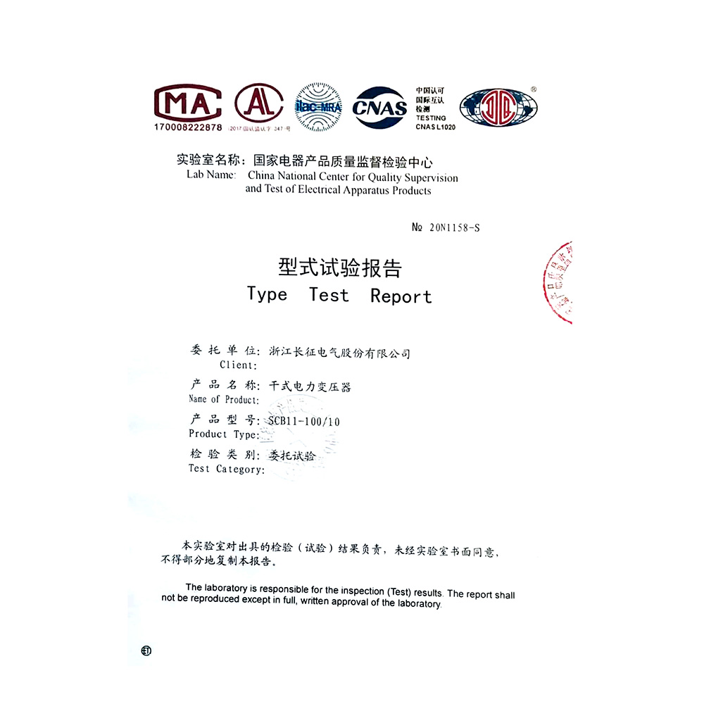 SCB12-100-10干式電力變壓器 型式試驗報告