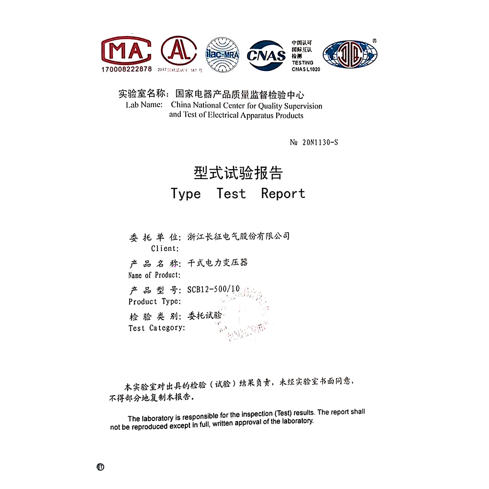 SCB12-500/10干式電力變壓器 型式試驗報告