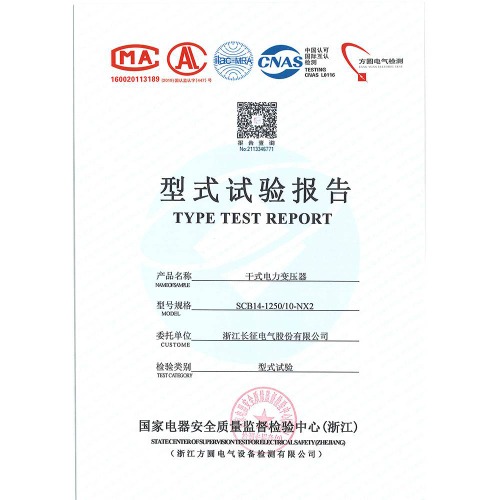 SCB14-1250/10-NX2干式電力變壓器 型式試驗報告