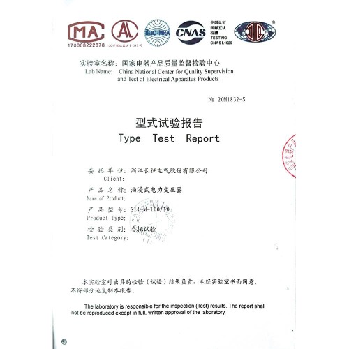 S11-M-100/10油浸式電力變壓器 型式試驗報告