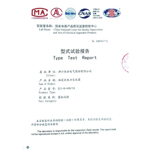 S11-M-400-10油浸式電力變壓器 型式試驗報告