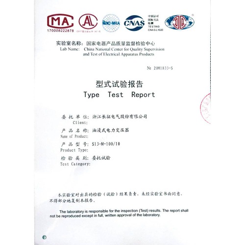 S13-M-100/10油浸式電力變壓器 型式試驗報告
