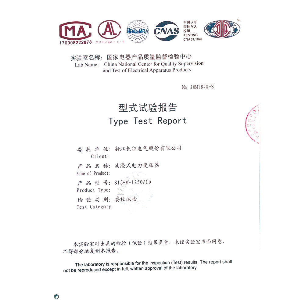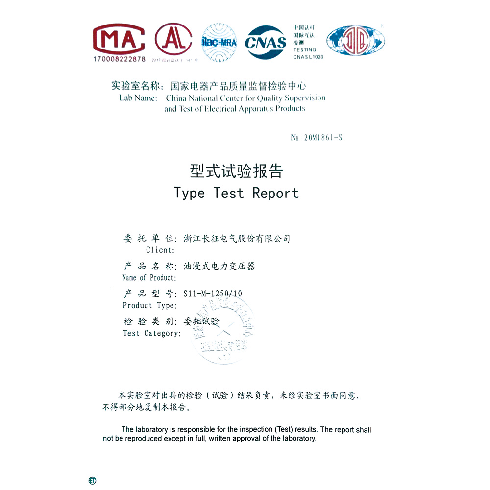 S11-M-1250/10油浸式電力變壓器 型式試驗報告