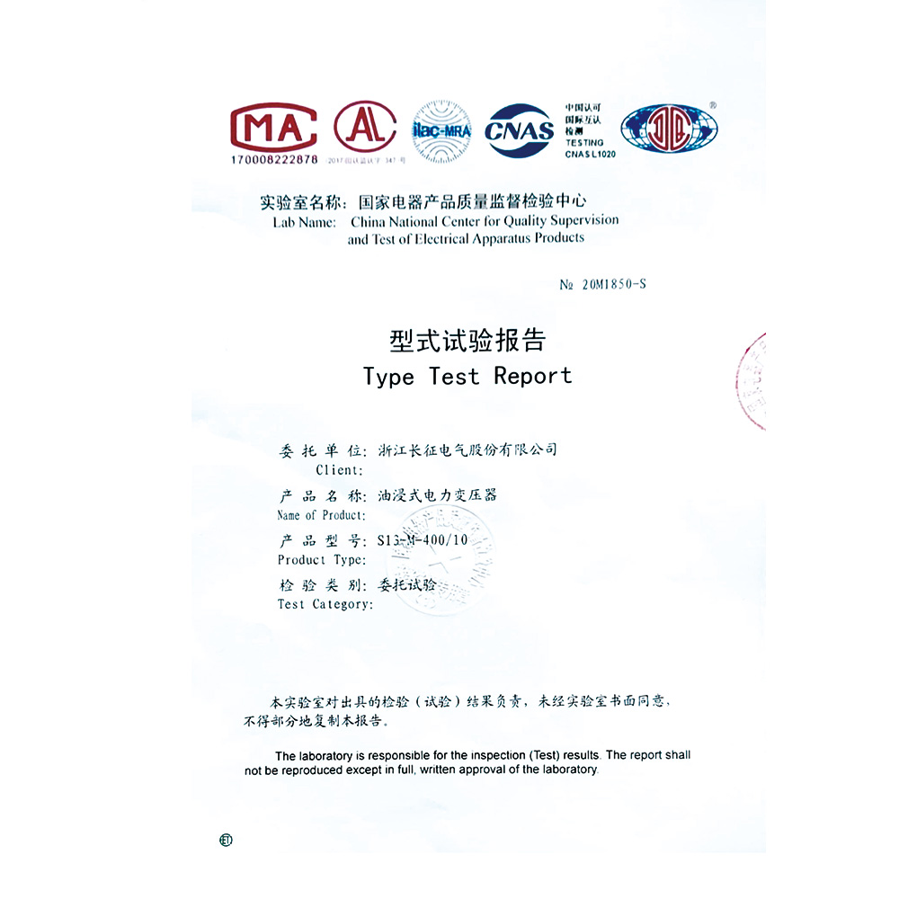 S13-M-400/10油浸式電力變壓器 型式試驗報告
