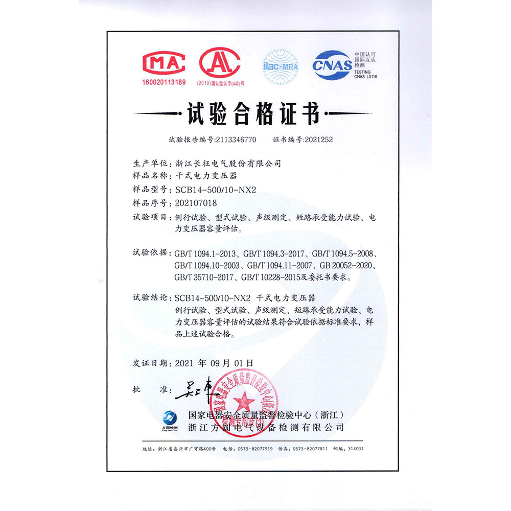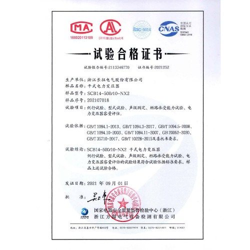 SCB14-500/10-NX2干式電力變壓器 試驗合格證書