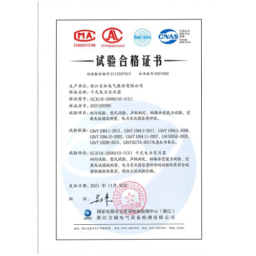 SCB18-2000/10-NX1干式電力變壓器 試驗合格證書