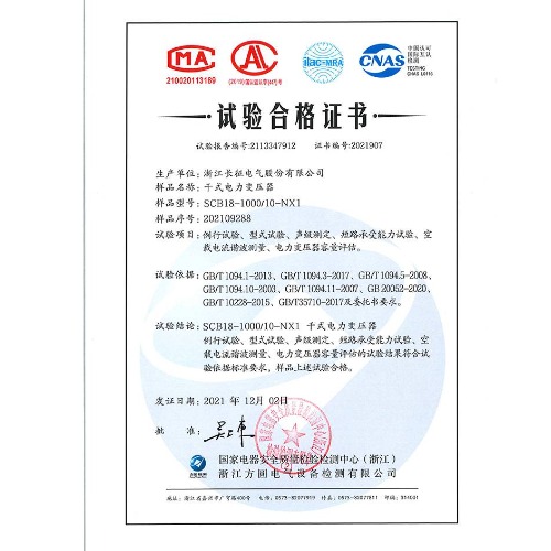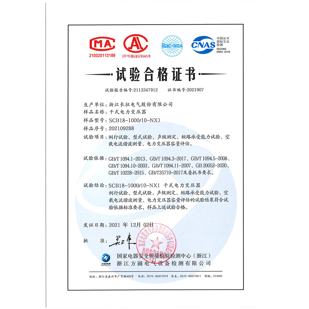 SCB18-1000/10-NX1干式電力變壓器 試驗合格證書