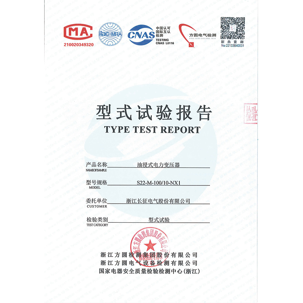 S22-M-100/10-NX1油浸式電力變壓器 型式試驗報告