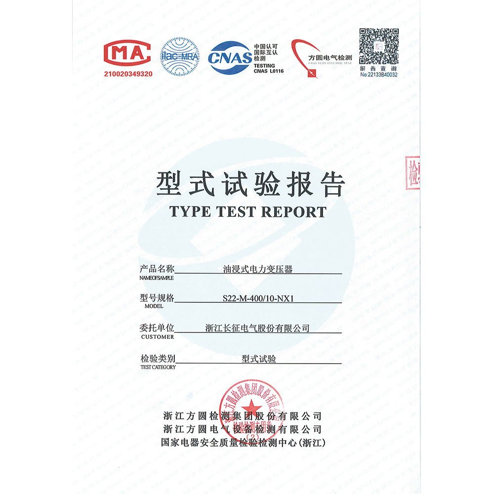 S22-M-400-10-NX1油浸式電力變壓器 型式試驗報告