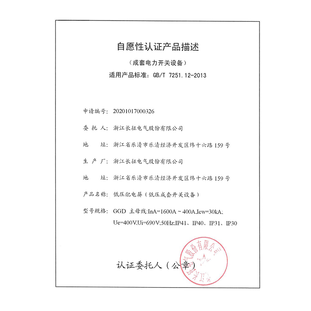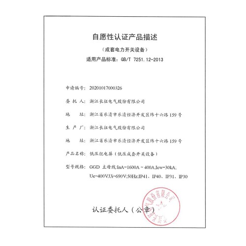 GGD低壓配電屏(低壓成套開(kāi)關(guān)設(shè)備)自愿性認(rèn)證產(chǎn)品描述