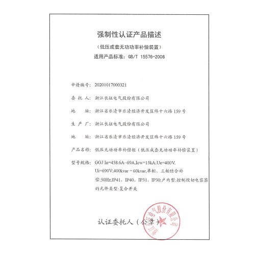 GGJ低壓無(wú)功功率補(bǔ)償柜(低壓成套無(wú)功功率補(bǔ)償裝置)強(qiáng)制性認(rèn)證產(chǎn)品描述