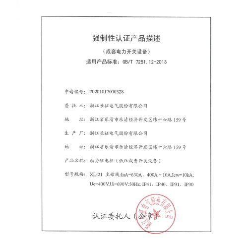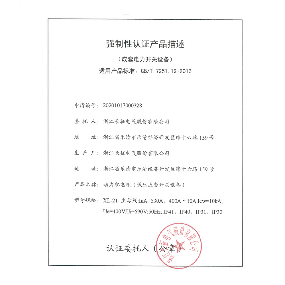 XL-21動(dòng)力配電柜(低壓成套開(kāi)關(guān)設(shè)備)強(qiáng)制性認(rèn)證產(chǎn)品描述
