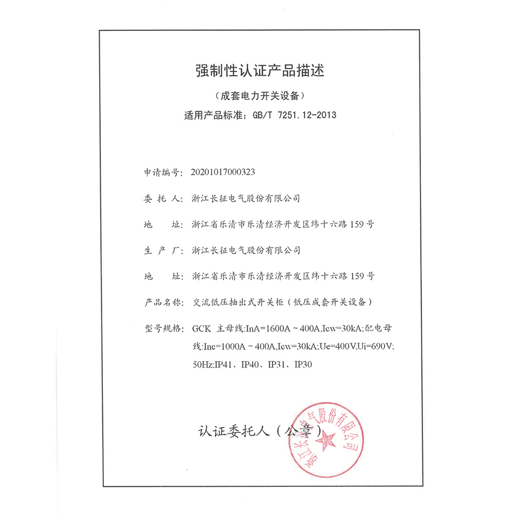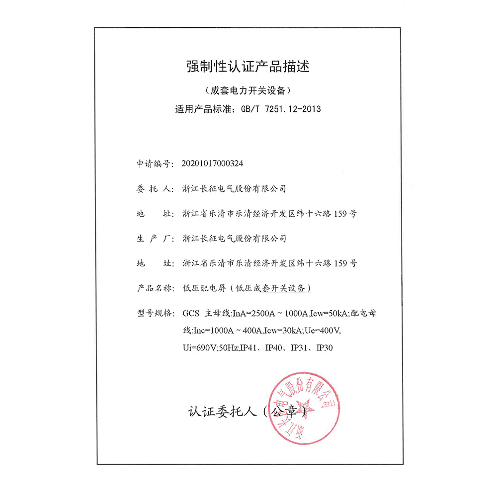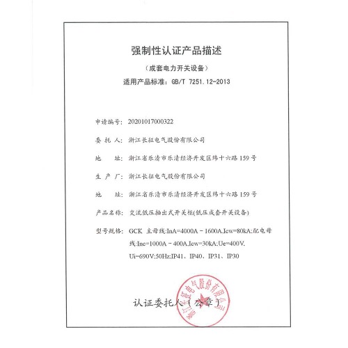 GCS低壓配電屏(低壓成套開(kāi)關(guān)設(shè)備)強(qiáng)制性認(rèn)證產(chǎn)品描述
