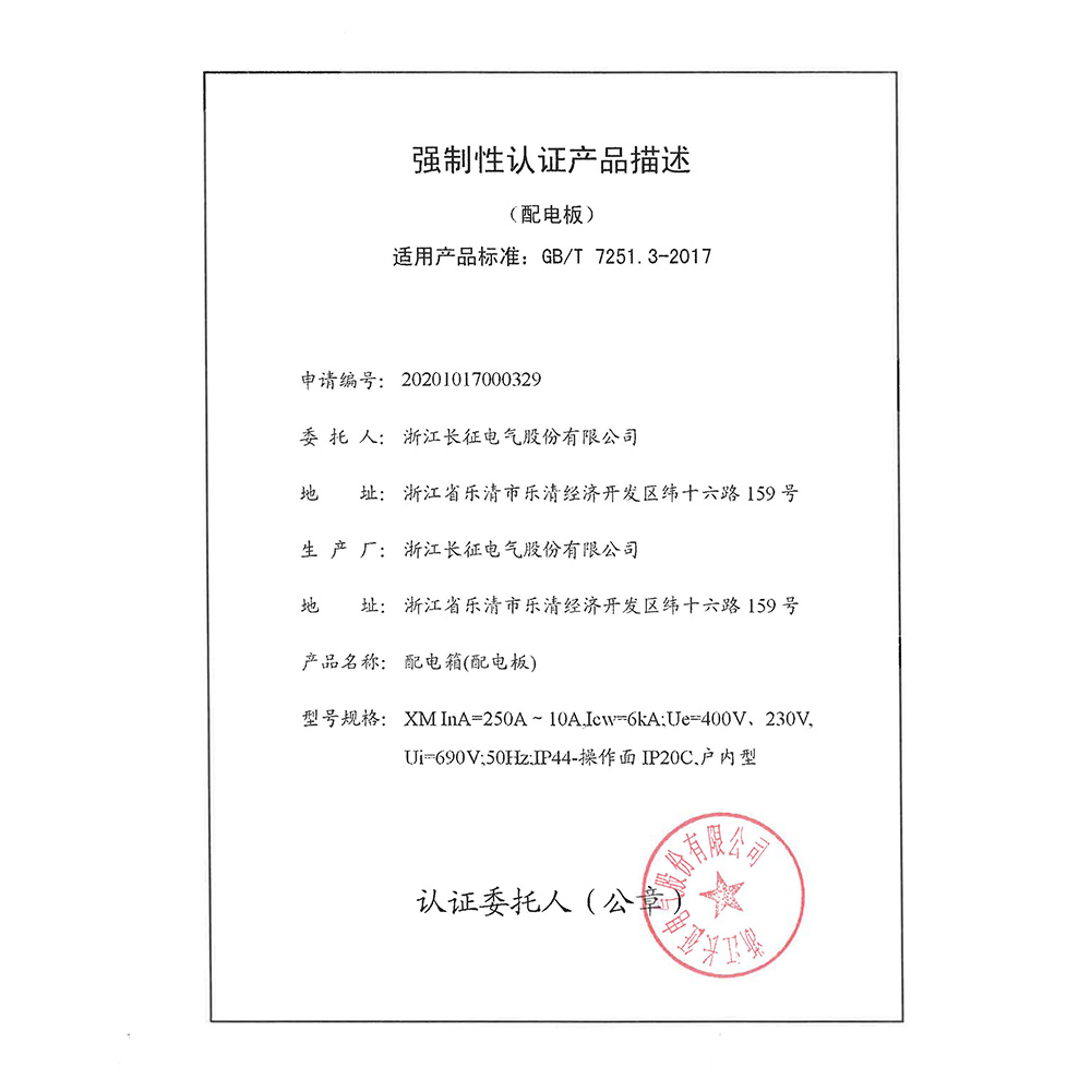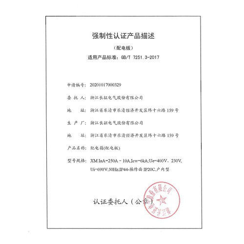 XM 250-10A配電箱強(qiáng)制性認(rèn)證產(chǎn)品描述