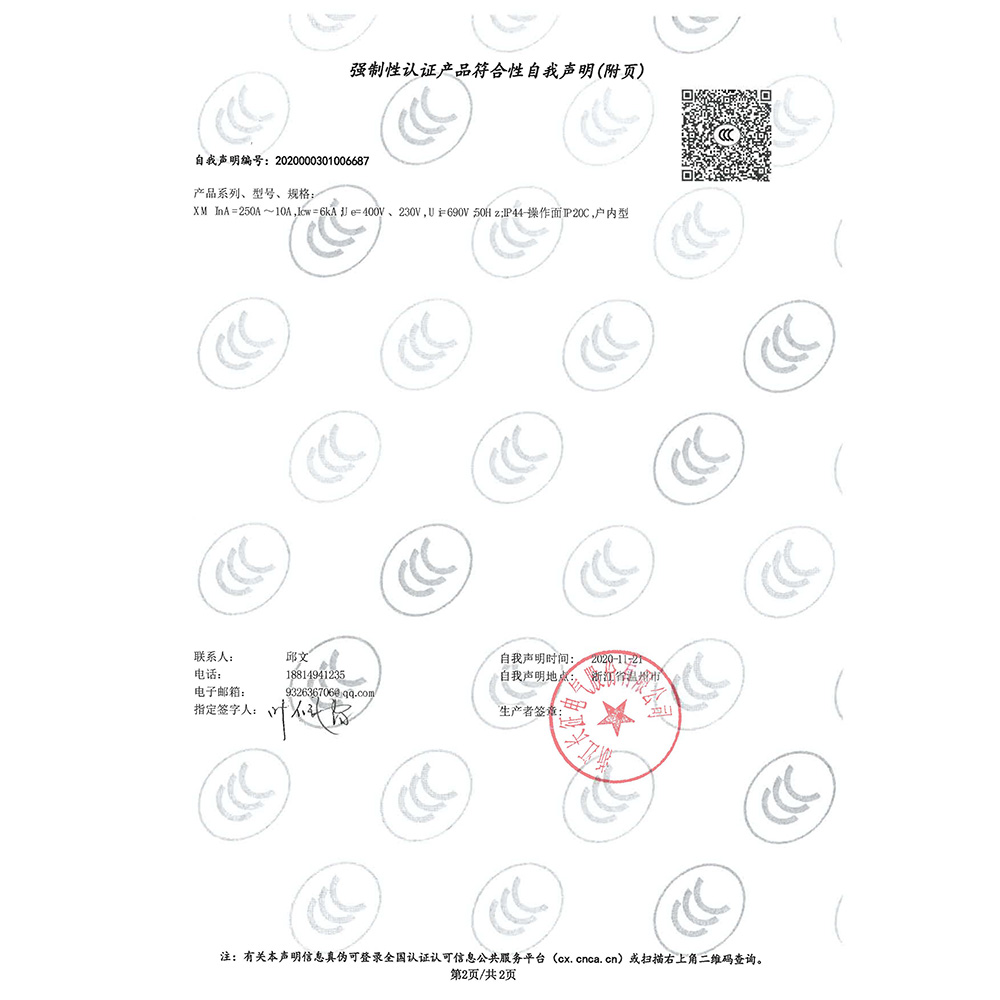 XM強(qiáng)制性認(rèn)證產(chǎn)品符合性自我聲明(附頁)