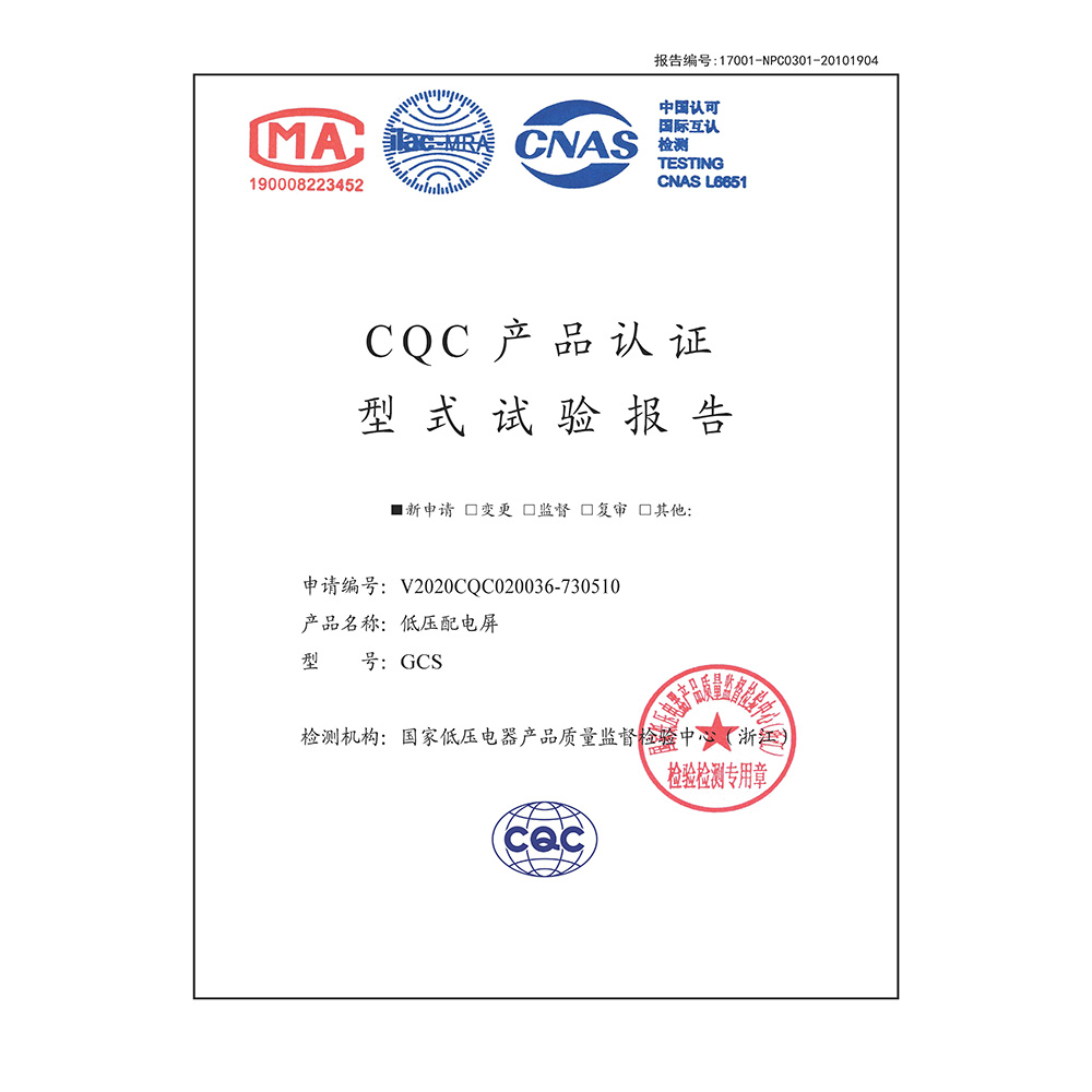 GCS(1000A-2500A)-低壓配電屏-CQC型式試驗報告