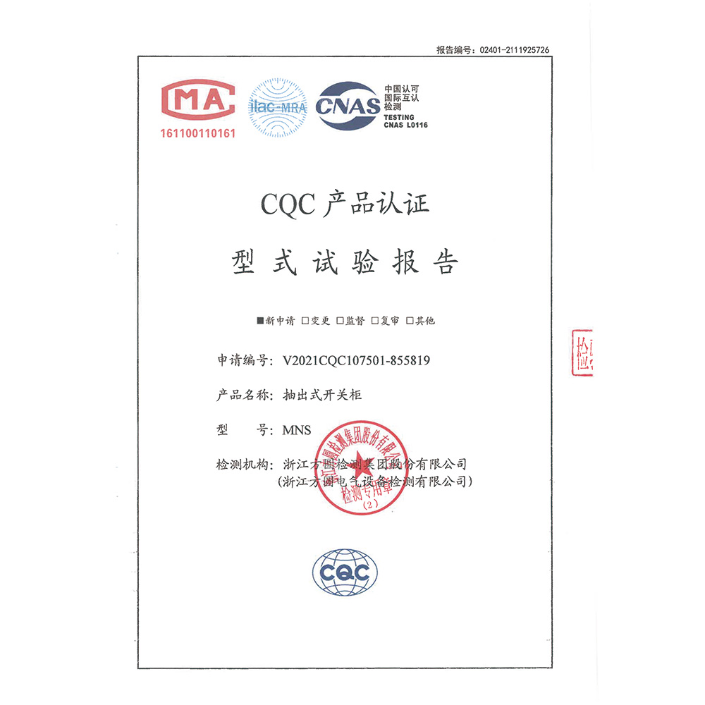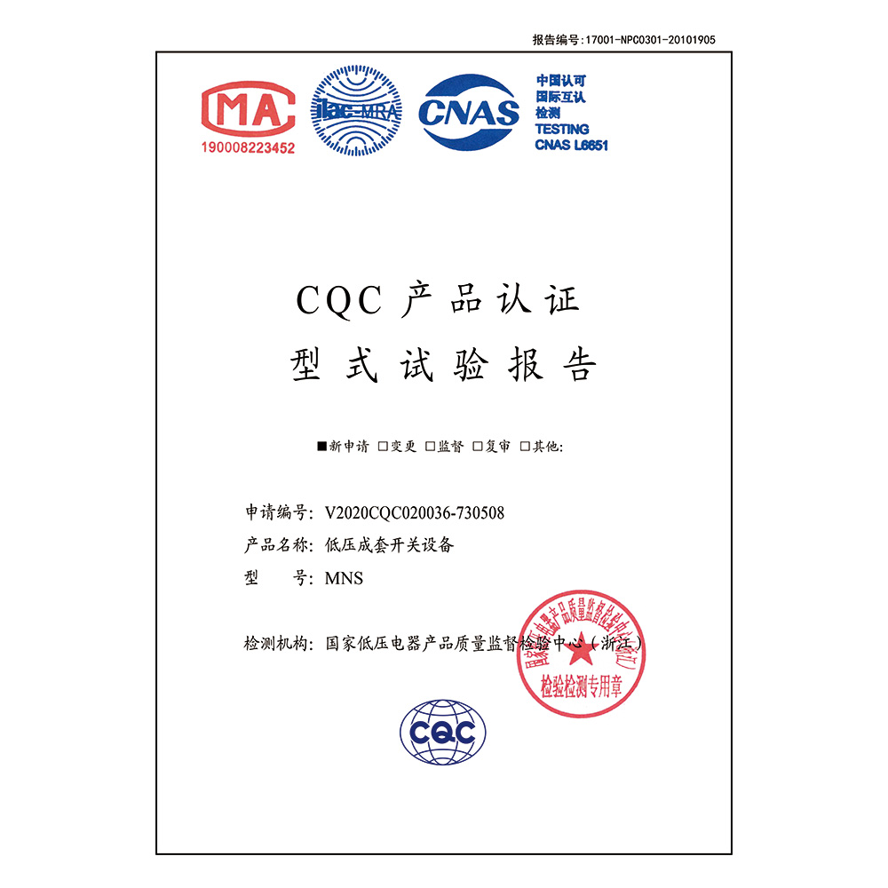 MNS(1000A-2500A)-低壓成套開關設備-CQC型式試驗報告