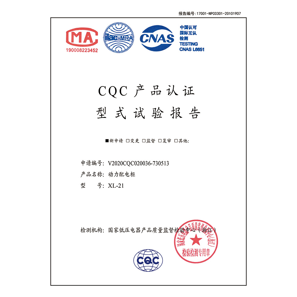 XL-21(630A-400A)-動力配電柜-CQC型式試驗報告