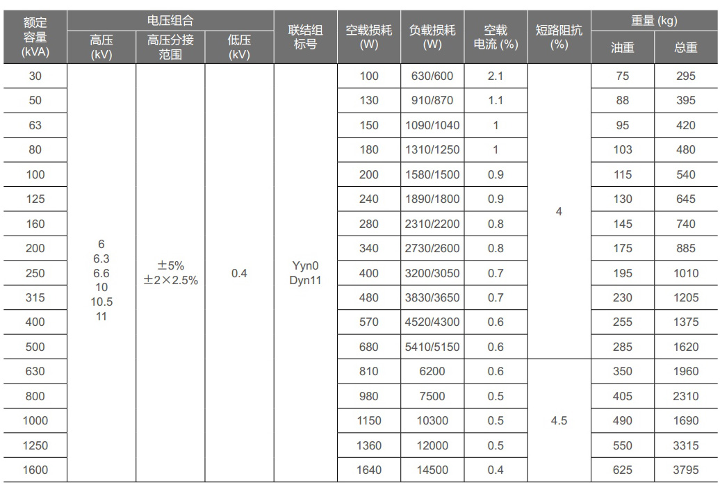 注:表中斜線上方的負(fù)載損耗值適用于Dyn11或Yzn11聯(lián)結(jié)組,斜線下方的負(fù)載損耗值適用于Yyn0聯(lián)結(jié)。