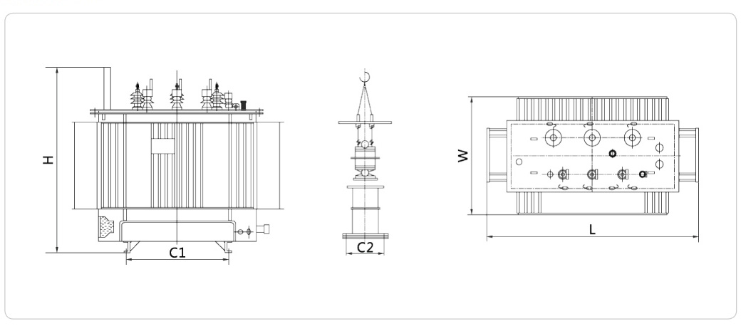繞組采用瓦楞油道,不浸漆工藝,緊縮帶綁扎。繞組均為同心式線圈,高壓繞組具有對應(yīng)分接電壓要求的抽頭,引至分接開關(guān)上,開關(guān)安裝在箱蓋上,且需切斷電源后方可變換分接電壓。
